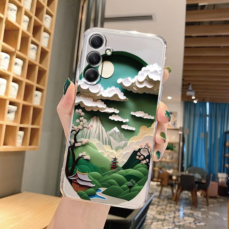 Мягкий прозрачный силиконовый чехол с узором в китайском стиле для Samsung A55 A35 M35 M34 S24 Xiaomi Redmi Note 13 Pro 13C Camera Противоударный защитный чехол Xiaomi 11 Lite 5G NE