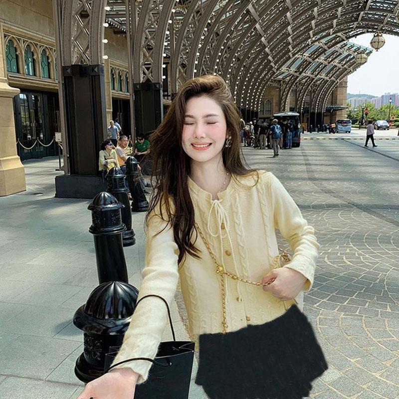 Мягкий свитер женский осенне-зимний новый стиль узел бабочка простой и нежный длинный рукав вязаный кардиган one size жёлтый