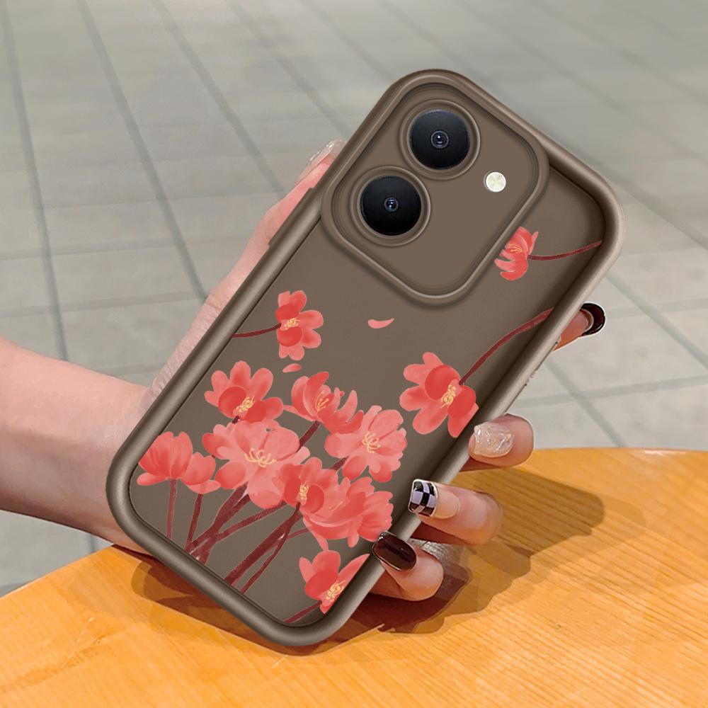 Мягкий силиконовый квадратный чехол с рисунком лестницы для телефона, полное покрытие, противоударный защитный резиновый чехол для камеры для Vivo Vivo Y35 коричневый