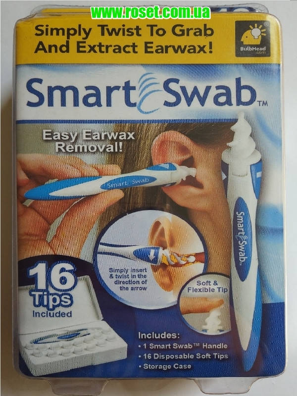 Smart swab – это лучший, быстродейственный способ для очистки ваших ушей. Обычные ватные палочки можно просунуть слишком далеко, так что они способны навредить стенкам слухового прохода и ушной раковине, и даже оставить микроцарапины на барабанной перепонке. Благодаря своей гибкости и легкости материалов Мягкий спиральный очиститель для ушей является безопасным аналогом ватных палочек.