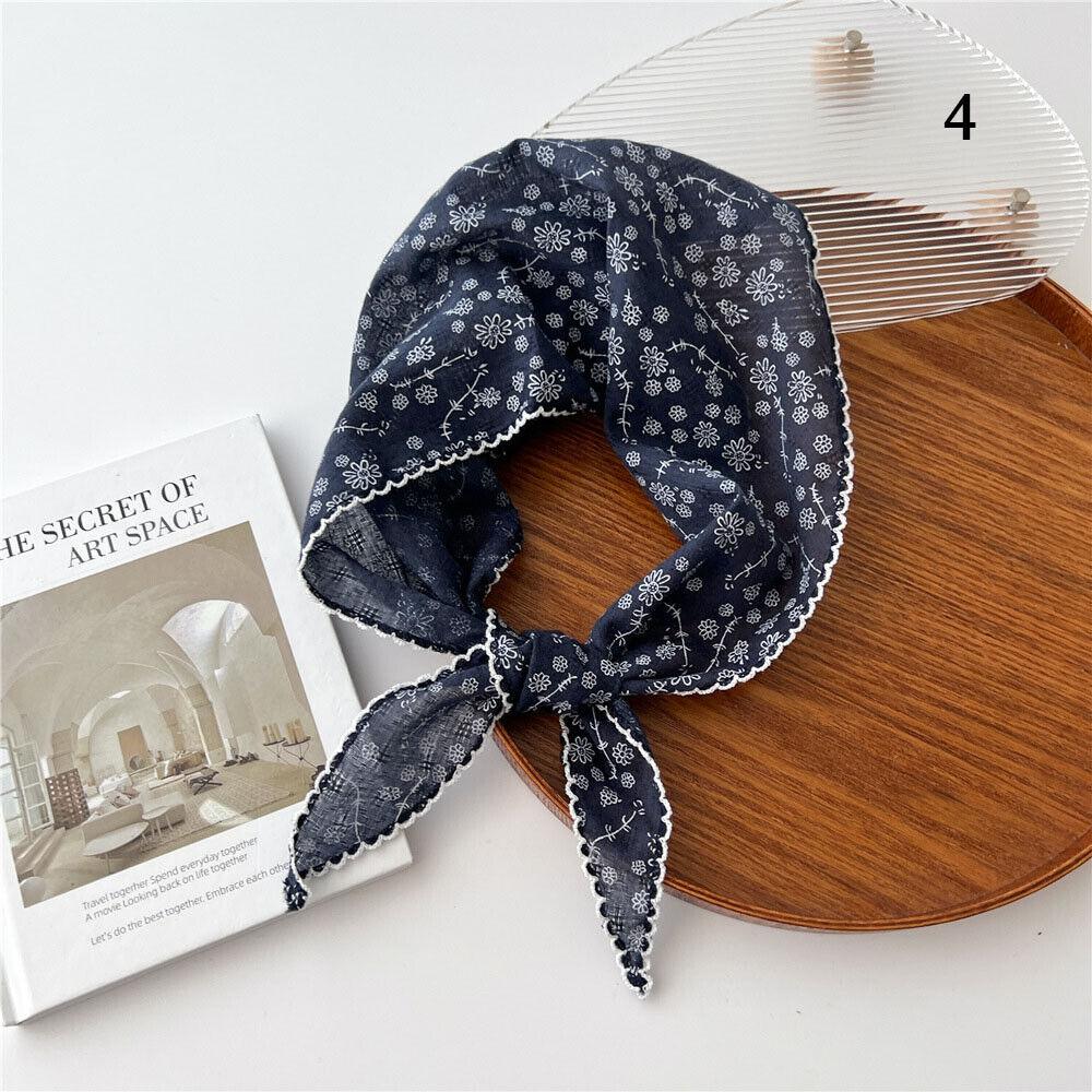 Мягкий хлопковый льняной треугольный шарф с маленьким цветком, тонкий узкий шейный платок, шарф для волос