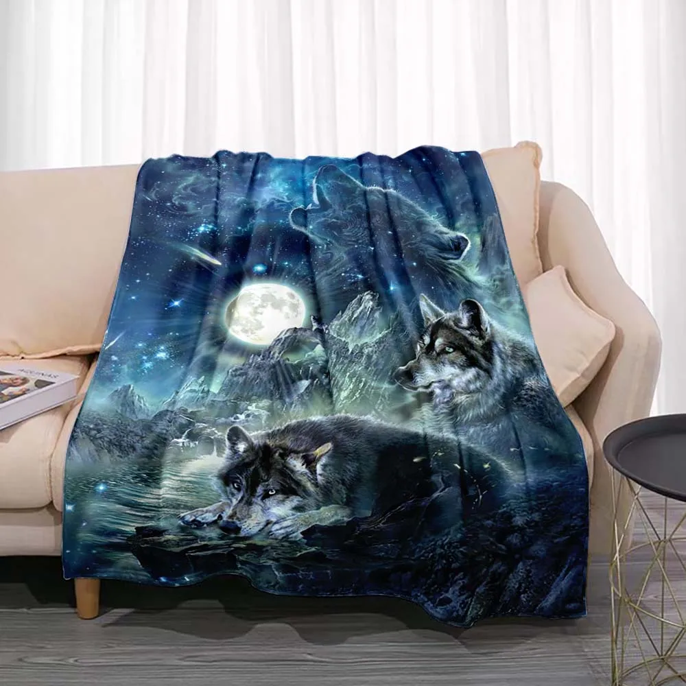 Мягкое фланелевое одеяло с 3D-принтом волка, украшение для кровати, домашний текстиль, роскошный подарок для взрослых и детей, весна-лето