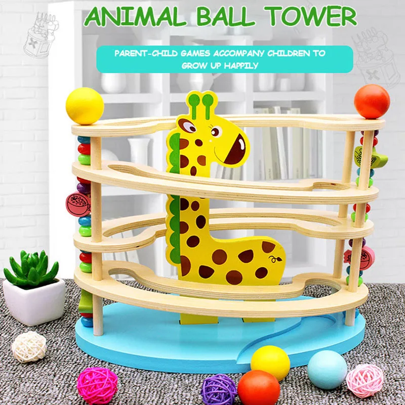 Мяч-башня с жирафом, игра для родителей и детей, детская развивающая игрушка для раннего развития, инерционный шар, Детские экологически чистые деревянные игрушки