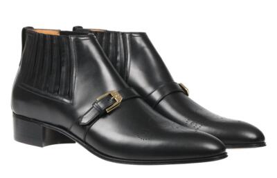 НОВЫЕ МУЖСКИЕ ЧЕРНЫЕ КОЖАНЫЕ БОТИНКИ С ЛОГОТИПОМ GUCCI 14,5/США 15, Черный