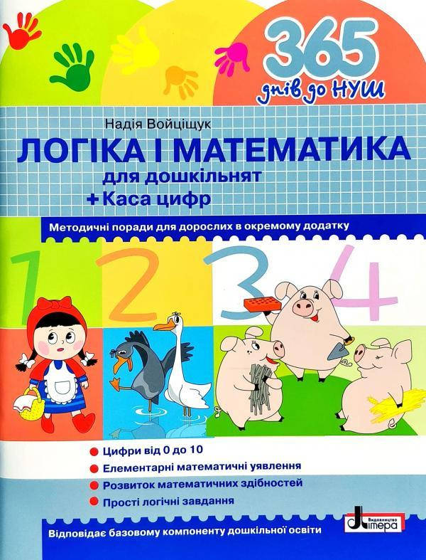 Хочете, щоб ваша дитина почувалася впевнено і радісно зустріла новий етап життя?Посібники серії "365 днів до Нової української школи" не переобтяжують знаннями, а розвивають природну допитливість, вчать міркувати, творчо мислити, тренують дрібну моторику - комплексно забезпечують надійну основу для подальшого успіху.Дорослим, які хочуть підготувати дитину до школиВи тримаєте в руках оригінальний посібник "НУШ. Логіка і математика для дошкільнят", за допомогою якого зможете підготувати дитину до школи, зокрема навчити основ математики, розвинути пам'ять, увагу й мислення.Комплект кожного рівня містить робочий зошит для дитини та методичні рекомендації для дорослих.Як працювати з комплектомМетодичні рекомендації для дорослих (вихователів, батьків, репетиторів) містять викладення матеріалу за темами, що допоможе ефективно організувати роботу. Тут ви знайдете чимало цікавих усних завдань, які сприятимуть кращому засвоєнню матеріалу, зроблять процес навчання різноманітним і цікавим.Робочий зошит призначений для дитини: у ньому вона виконуватиме завдання різних типів.По закінченні курсу рекомендується оцінити рівень засвоєння дитиною начального матеріалу за допомогою тестів «Чого ми навчилися».Під час занять стимулюйте інтерес дитини до навчання, звертайте увагу на її успіхи, схвалюйте її найменші досягнення. Ніколи не коментуйте помилки і недоліки дитини. Навчити можна лише на позитивних прикладах.Успіхів Вам!