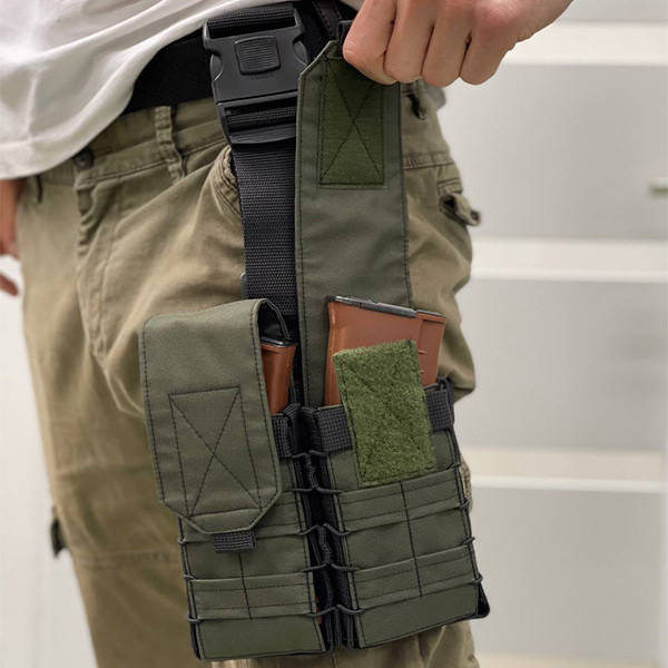 Качественный подсумок на бедро под 2 магазина АК. Сделан из прочной ткани, производится в Украине, проверен на прочность и одобрен военными. Крепится на ремень.