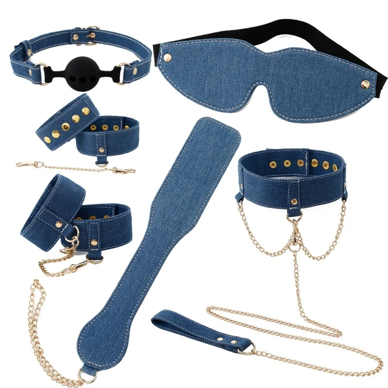 Набор БДСМ, джинсовые эротические наручники, фетиш, женское весло, секс-игрушки для пар, бондаж, воротник, маска, товары для взрослых