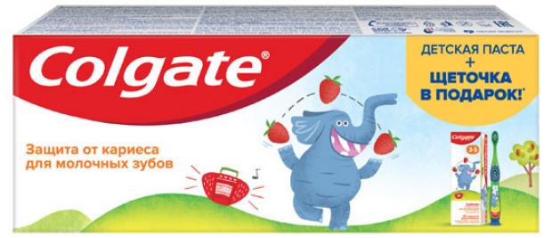 Набор Зубная паста детская Colgate 3-5 с фторидом, 40 мл + Зубная щетка детская Colgate 2-5 лет в подарок, 1 шт