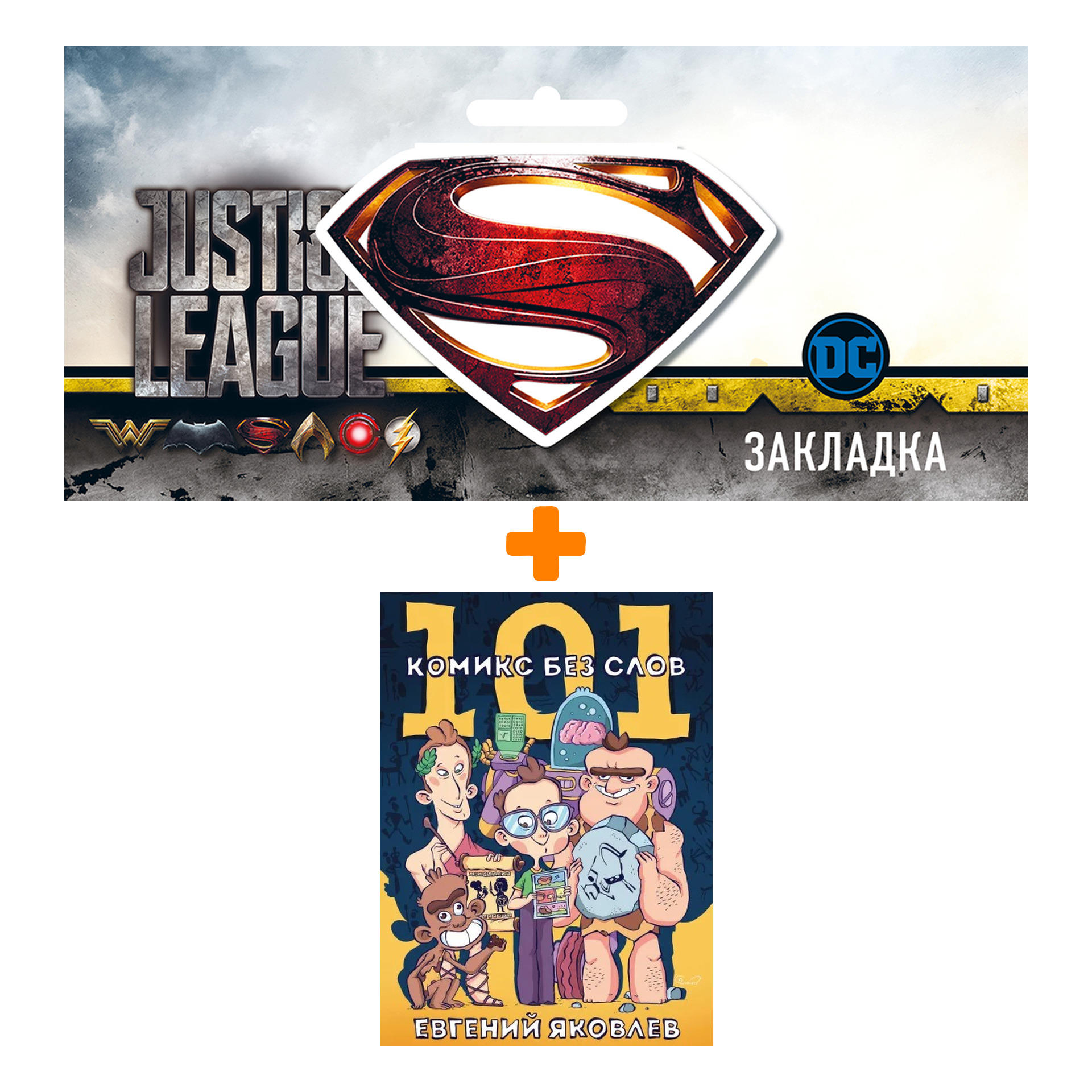 В состав набора входят:Закладка магнитная DC Justice League: Superman , Комикс 101 комикс без словЗакладка магнитная DC Justice League: Superman :Официальные продукты по супергеройской вселенной! Большие магнитные закладки с эмблемами любимых супергероев! Суперкрутой сувенир для фанатов вселенной DC, а также надёжный помощник для школьника и студента. Закладка изготовлена по принципу клипсы: зажимает страницу книги между двух магнитов.Комикс 101 комикс без слов:Создать комикс без слов, передав идею лишь рисунком – настоящее искусство! Известный художник Евгений Яковлев давно признан профессионалом своего дела, и в сборнике «101 комикс без слов» он вновь доказывает своё мастерство.