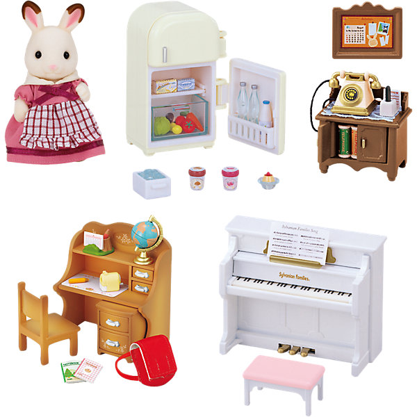 Этот набор представляет собой стартовый комплект для обустройства дома крольчонка по имени Мария. Вся необходимая мебель для комнаты и кухни немного оживит домик. В комнате у нее стоит письменный стол для подготовки к занятиям в школе. Она часто играет на пианино для своих гостей. А для того, чтобы созвониться с друзьями, у нее есть телефон. По выходным Мария любит готовить.