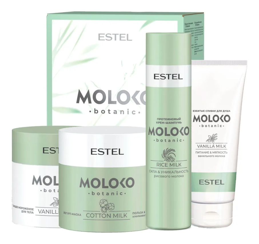 Набор Растительное молоко. Полное погружение Moloko Botanic (крем-шампунь Rice Milk 250мл + спрей Coconut Milk 200мл + маска-йогурт Cotton Milk 300мл + гель для душа Vanilla Milk 200мл)