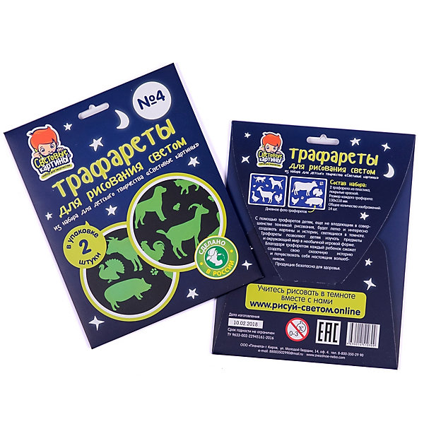 Набор трафаретов для набора для творчества «Световые картины». Трафареты позволят ребенку создавать картинки на специальном планшете. Нарисованные изображения светятся в темноте.