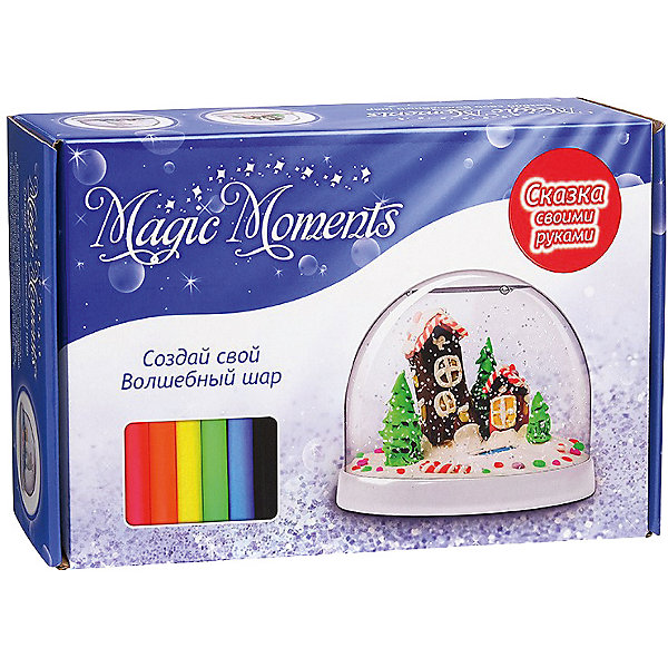 Как это работает? Слепите фигурку или композицию из пластилина. Следуя инструкции, разместите вашу фигуру внутри прозрачной сферы, затем заполните сферу специальной жидкостью и добавьте снежные блестки. Ваш Волшебный шар готов! Потрясите его, и посмотрите, как красиво кружатся внутри маленькие снежинки. Это настоящее волшебство!