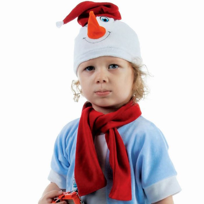 Набор Страна Карнавалия Снеговик в красном колпаке колпак, шарф размер 51-55, велюр, Красный