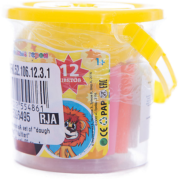 Набор "Тесто для лепки" "MULTIART" с изображением героев Союзмултфильм на ведерке. В наборе :12 цветов, общим весом 90 грамм, 1 формочка и валик для раскатывания теста. Тесто не липнет к рукам. Изготовлен из высококачественных гипоалергенных материалов.