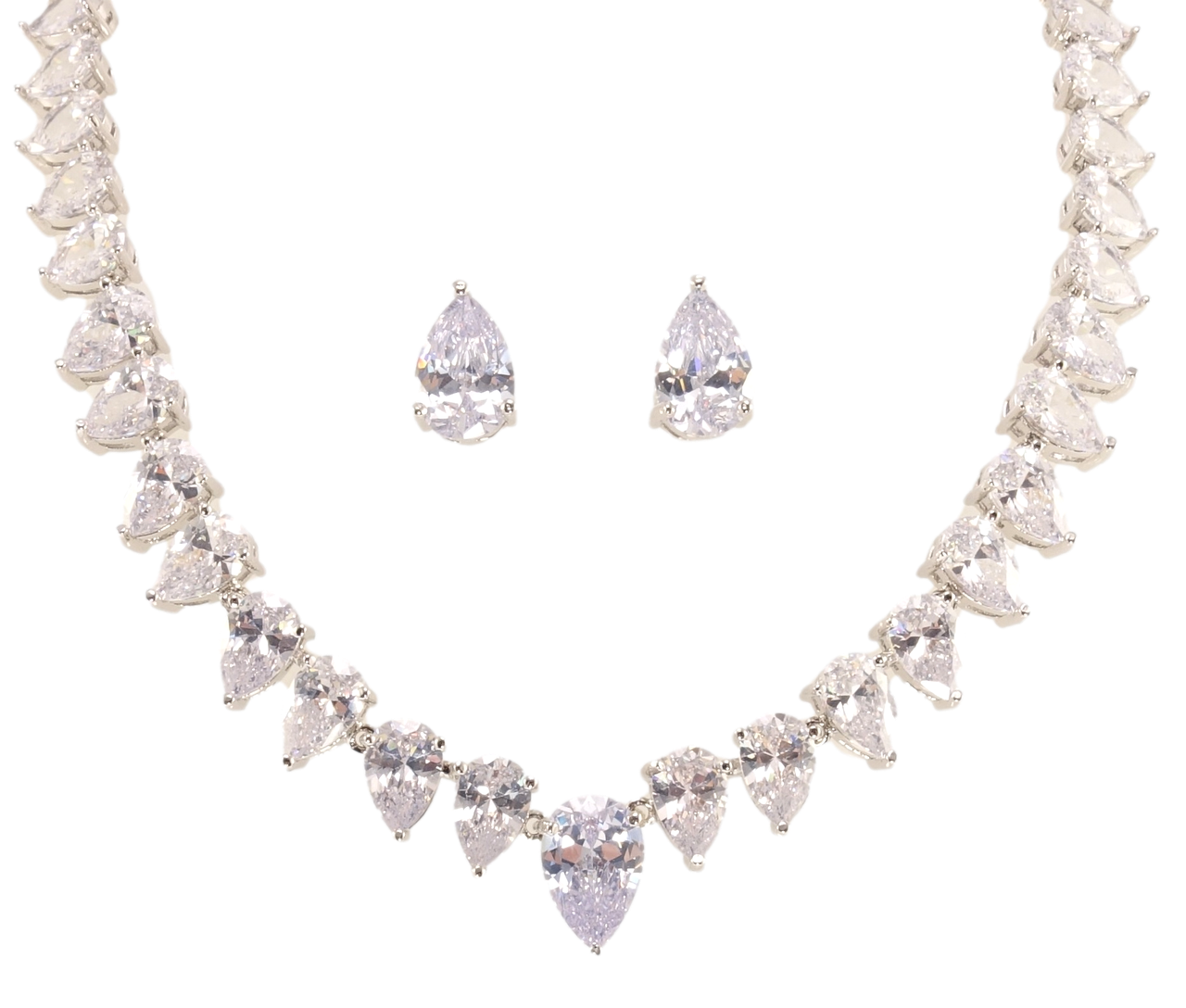 Набор ХР Родий Серьги Колье "Кристальные капельки" размер 42см х 7-12мм