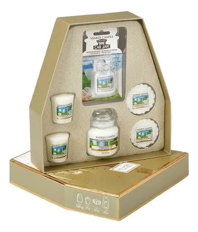 Yankee Candle набор чистый хлопок (свеча 104г + ароматизатор д/автомобиля + свеча 2*22г + свеча 2*49г) купить, цена на Randewoo.ru