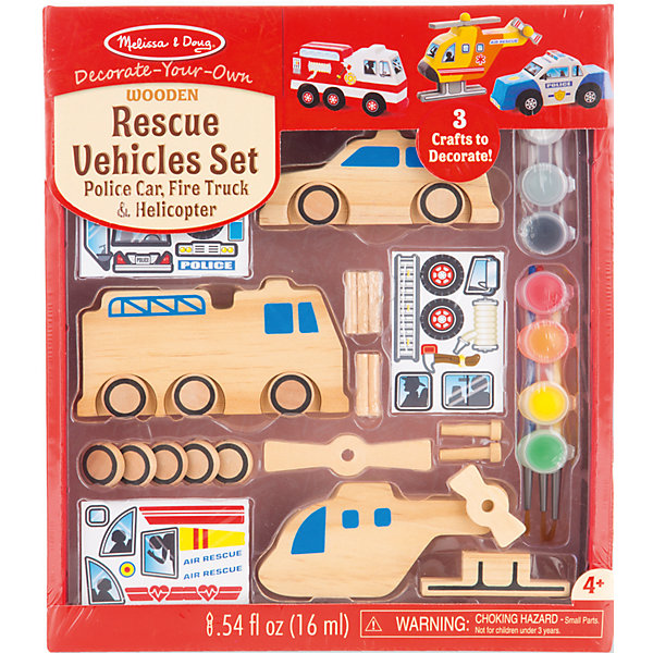 В набор входят детали полицейской машины, пожарной машины и вертолета, наклейки, краска, кисточка, клей - с помощью этого малыш сможет украсить траснпорт по своему желанию. Набор отличается удобной упаковкой, простотой использования и отличным качеством исполнения. Ребенка можно надолго увлечь им!