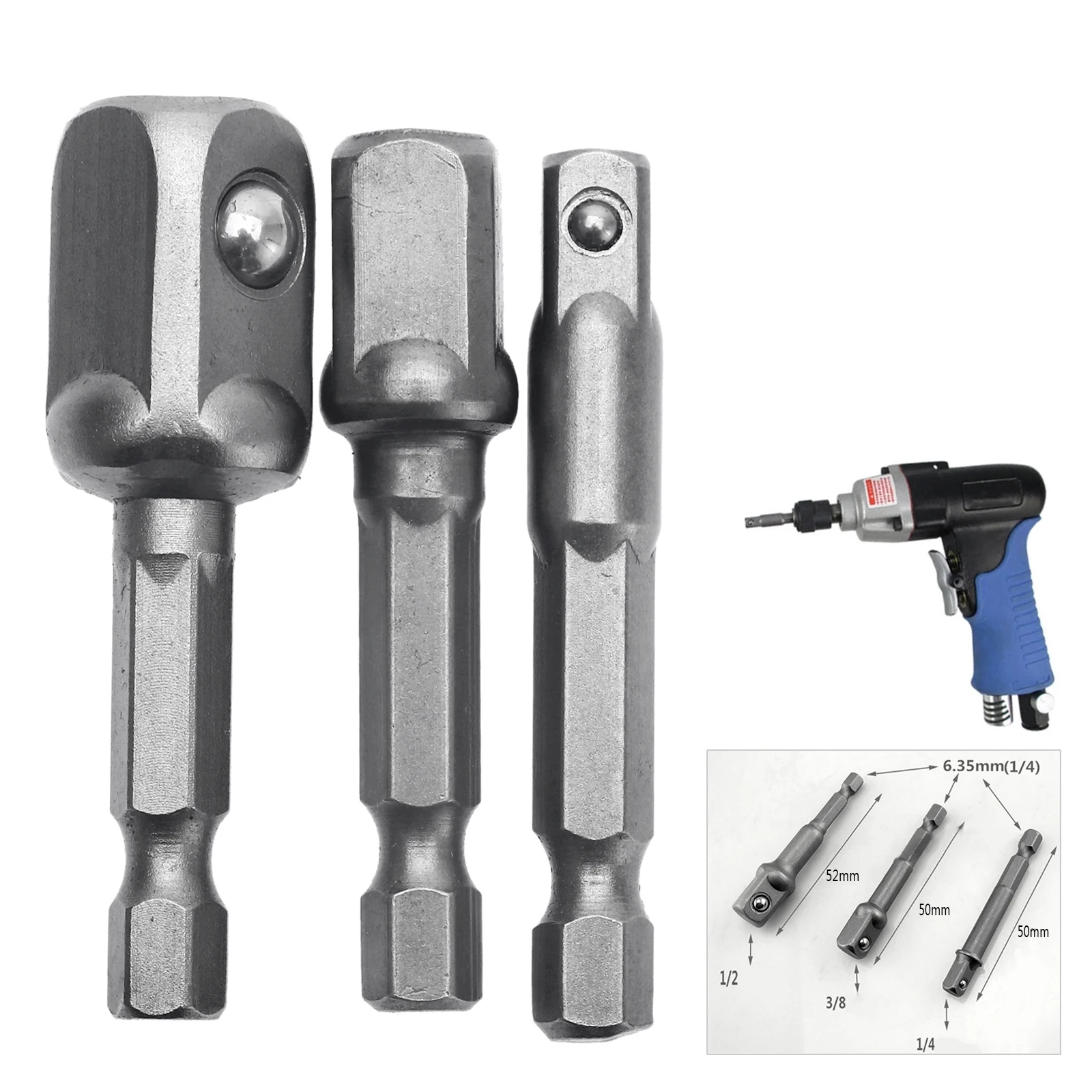 Набор адаптеров DRELD из ванадиевой стали, 3 шт., Деревообрабатывающие инструменты, шестигранный хвостовик до 1/4 "1/4" 3/8 ", удлинительные сверла, сверло, электроинструмент