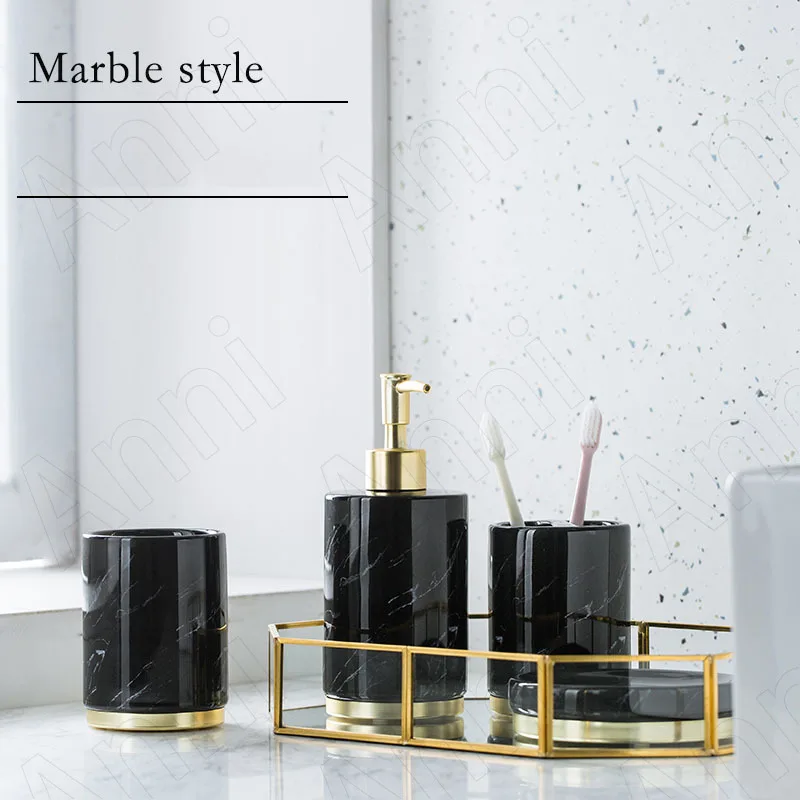 Набор аксессуаров для ванной комнаты с керамической мраморной текстурой