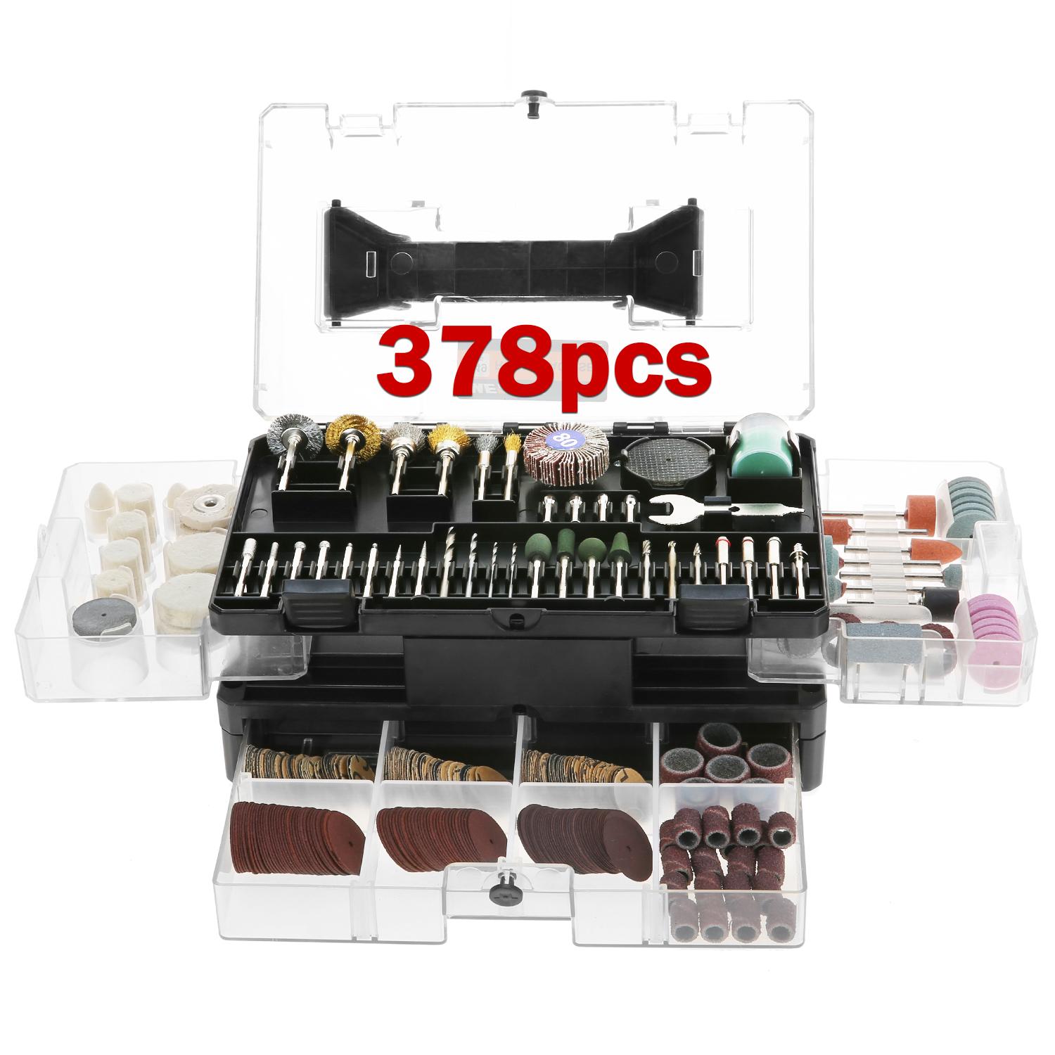 Набор аксессуаров для вращающегося инструмента, 378 шт.. В комплект входит полировальный воск, сверло, отрезной диск по смоле, шерсть. 1 прозрачный