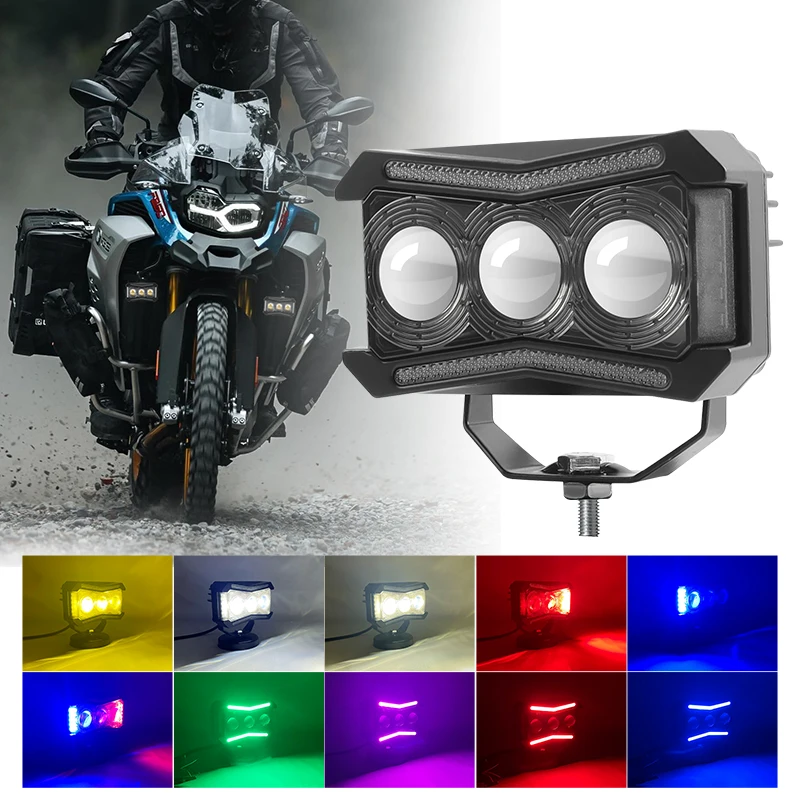 Motorcycle LED Spotlight Hi/Low Beam RGB Fog Lamps 3 Lens for Car Trucks SUV UTV Mini Lens Headlight Work light Driving Light