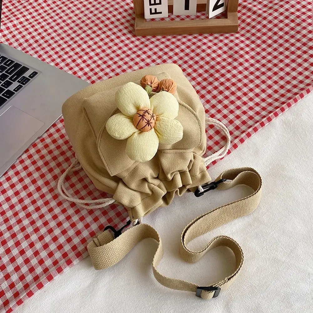 Bucet Bag Flower Crossbody Bags Drawstring Large Capacity Women's Bags Canvas Shoulder Bag Women