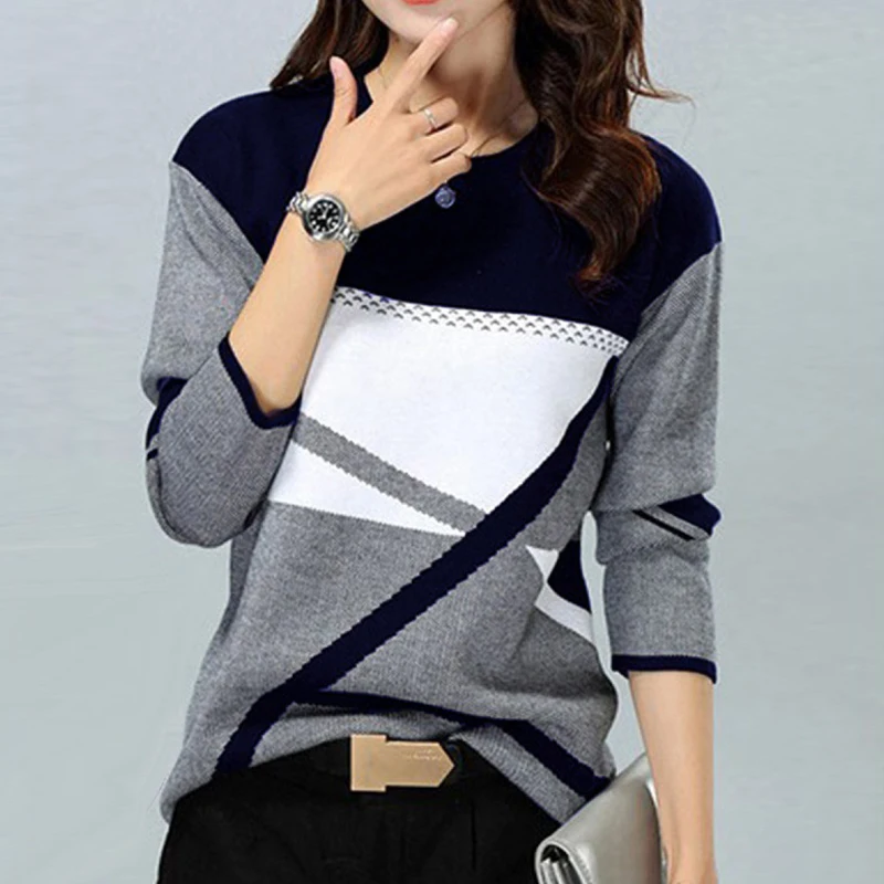 Fashion Women Blouse O-neck Long Sleeved Pullover Tops Lady Office Shirts Vintage Patchwork Print Street Loose Casual Plus Size
