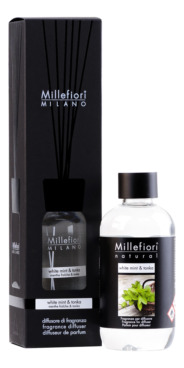 Millefiori Milano набор (ароматический диффузор белая мята и тонка natural white mint & tonka 100мл + запаска 250мл) купить в интернет-магазине, посмотреть фото, отзывы на Randewoo.ru. Каталог и цены на аромадиффузоры для дома и офиса