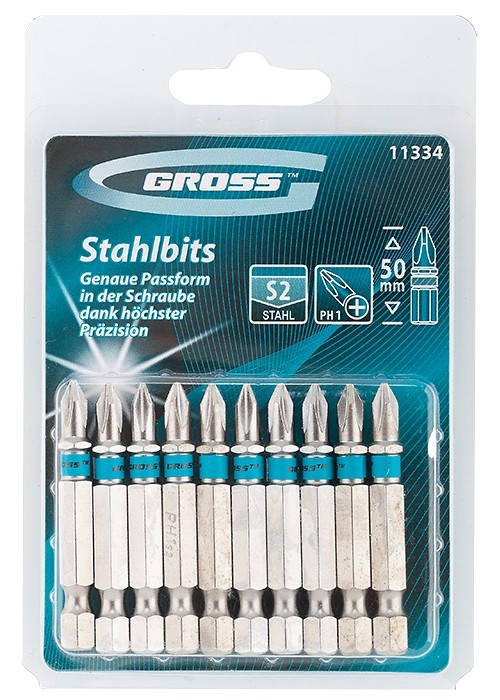Набор бит РН1 х 50, сталь S2, 10 шт Gross 11334