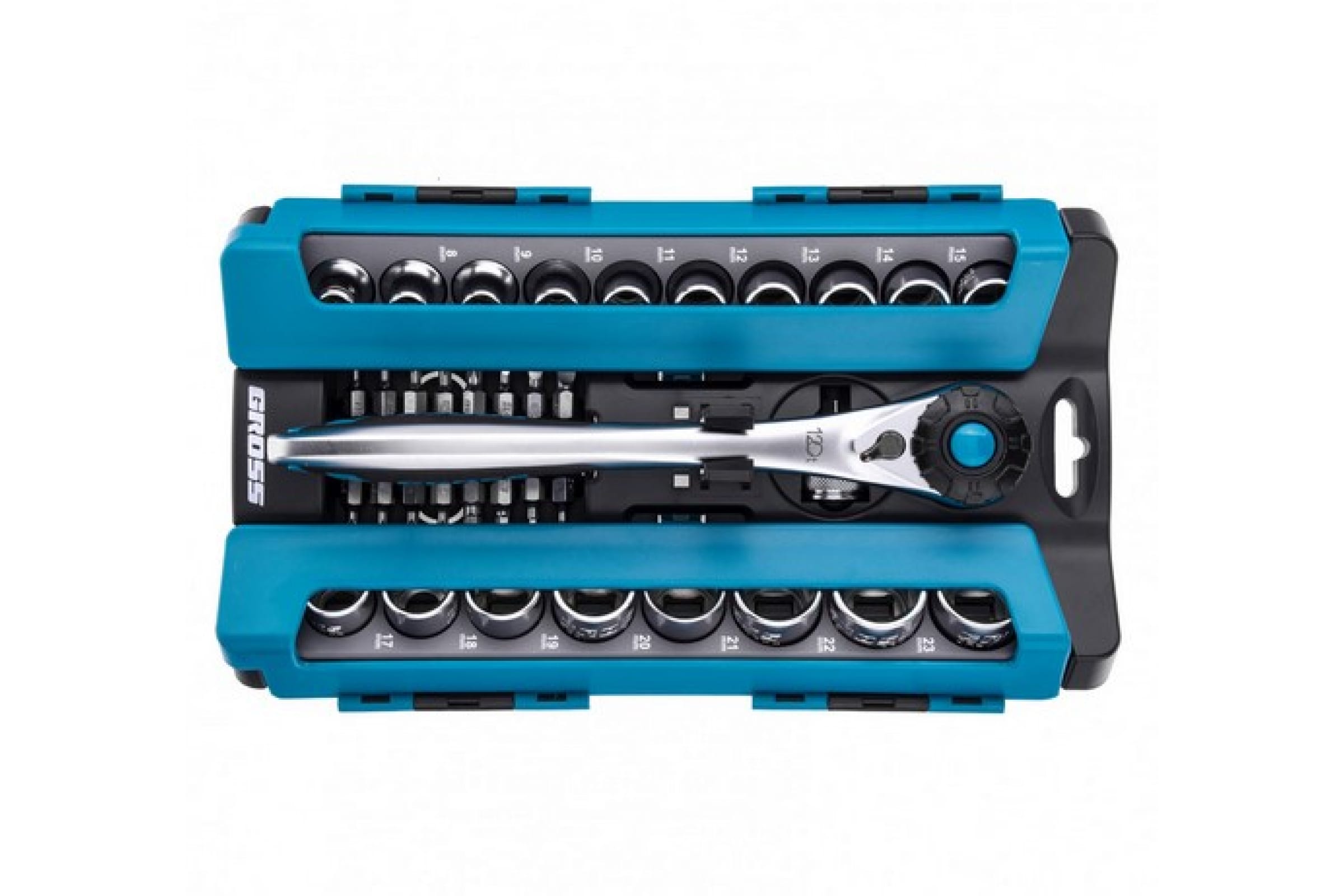 Набор бит и головок GROSS, предметов в наборе: 36шт., 1/2" с трещоткой 120 зубьев (14144)