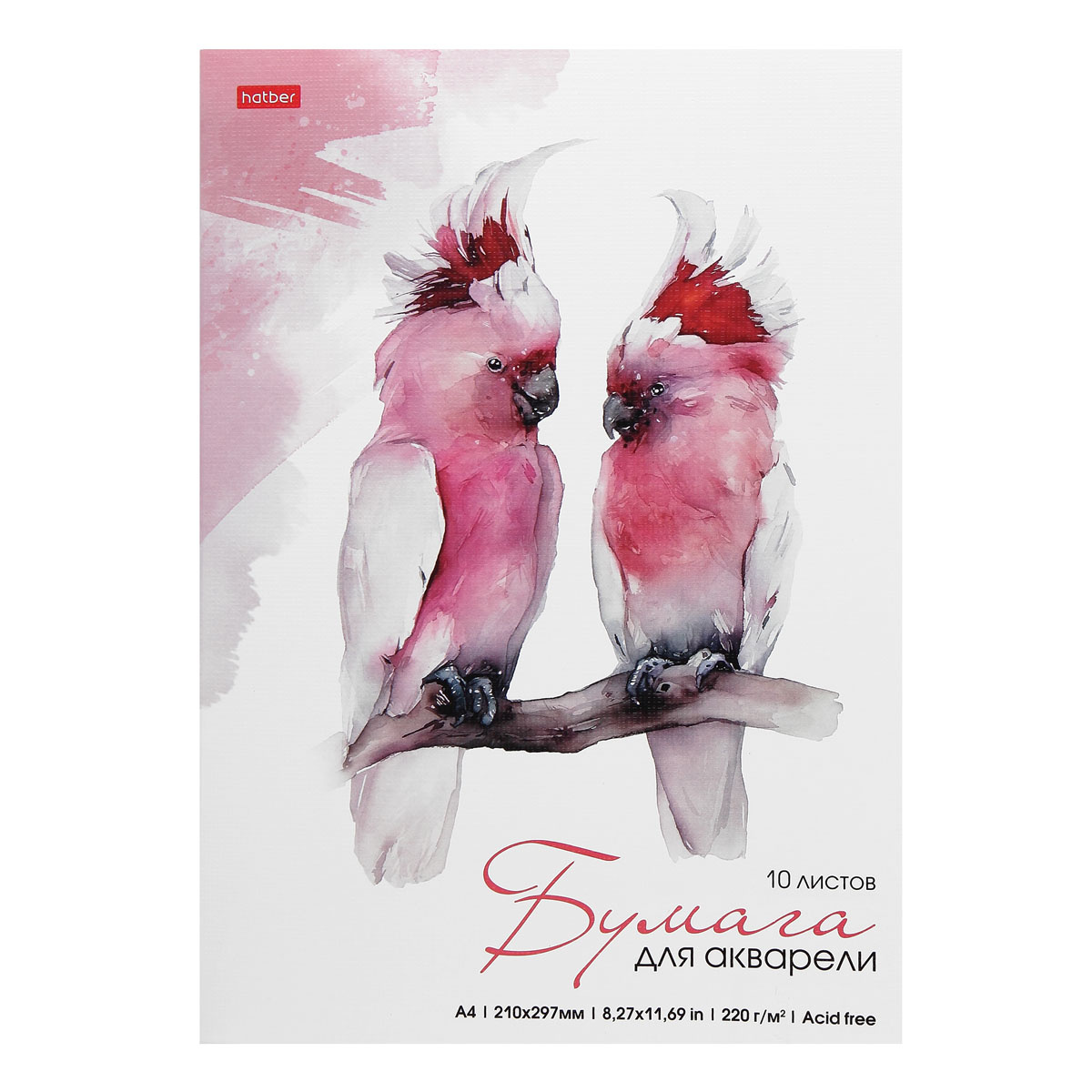 Набор бумаги для рисования акварелью Hatber упак 10л в наборе А4ф Эконом в папке тиснение Какаду, Россия
