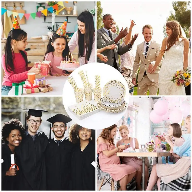 Набор бумажных тарелок, набор бумажных тарелок и посуды, 200 штук, набор Бумажных Столовых приборов для 25 сверхмощных бумажных тарелок и