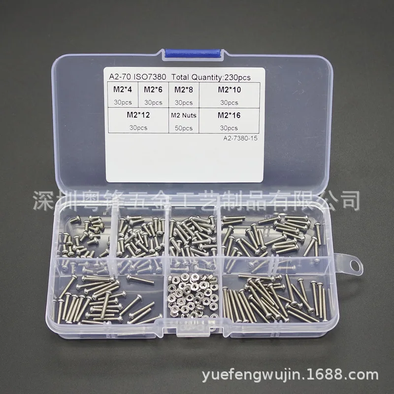 Набор винтов и гаек из нержавеющей стали 304, набор винтов и гаек с шестигранной головкой M2, 230 шт. с коробкой для хранения