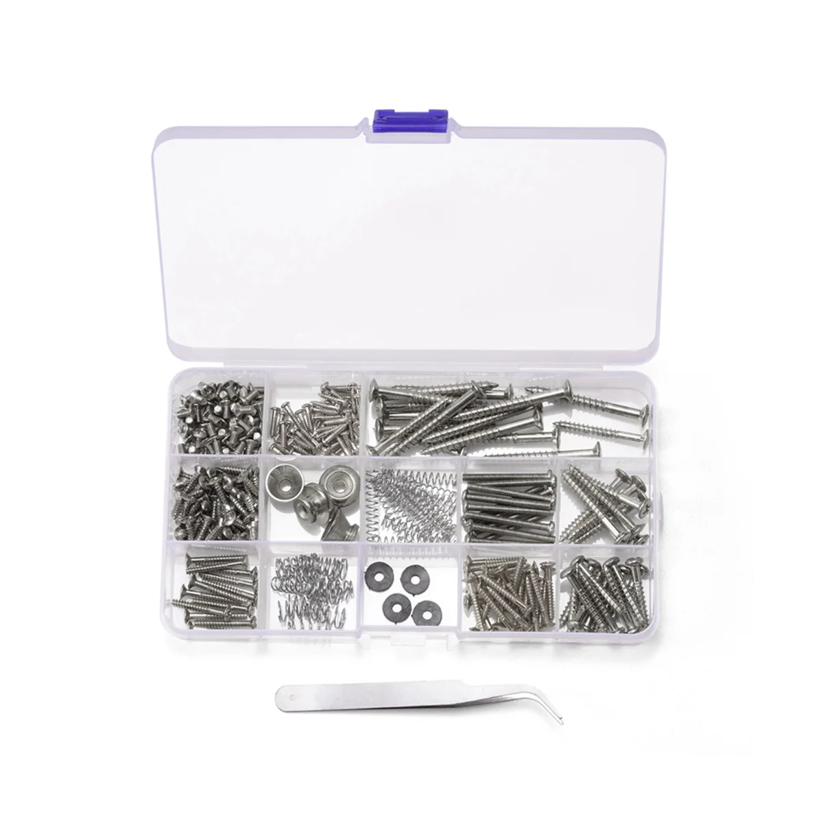 Набор винтов для гитары 254 шт./партия, для установки на заднюю панель, с футляром для хранения инструментов для электрогитары, серебристого цвета