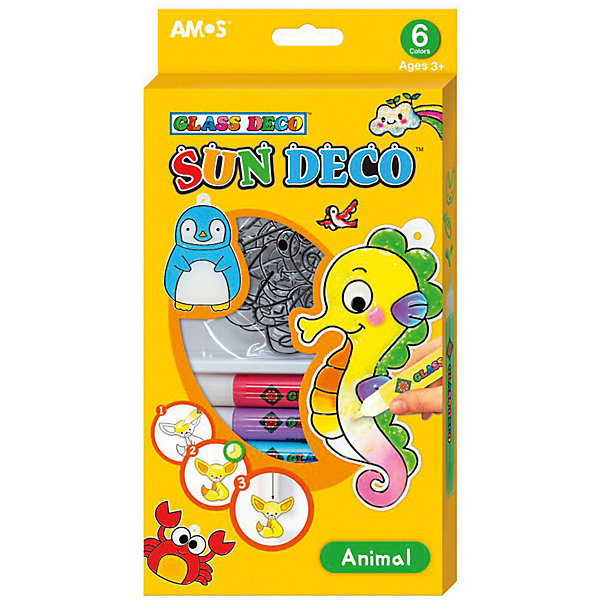 Набор витражных красок Amos "Животные", 6 цветов по 10,5 мл