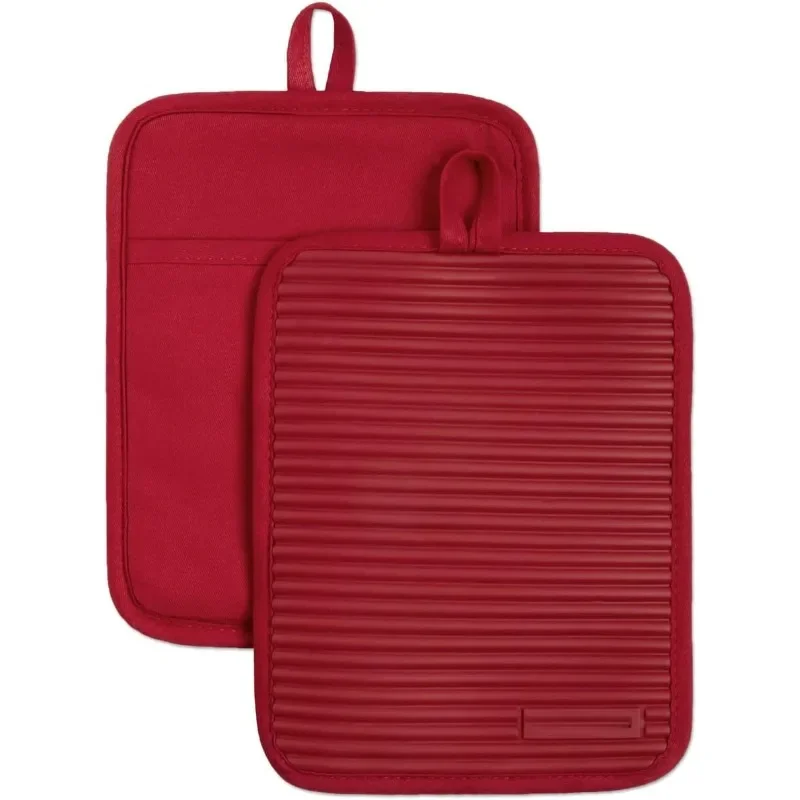 Набор водостойких держателей для кастрюль из ребристого мягкого силикона, Passion Red, набор из 2 штук
