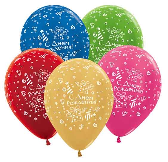 Набор разноцветных шаров из натурального латекса. 5 шт, с рисунком на тему "С Днем Рождения" в упаковке с хедером. Форма шара - круглая. Шар надувается до 30 см.