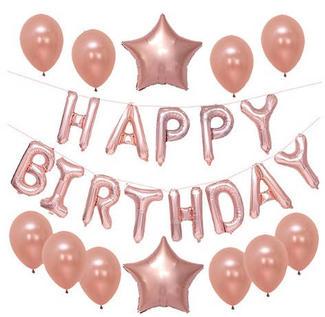 Фольгированные буквы Happy Birthday розовое золото (40 см в высоту, каждая буква отдельно, с петельками)