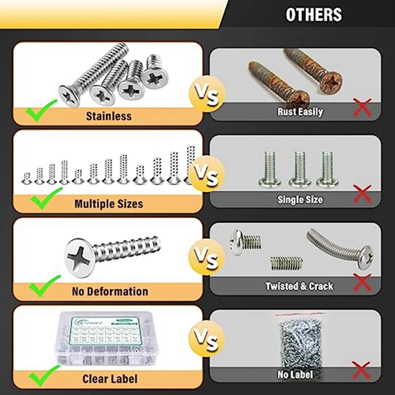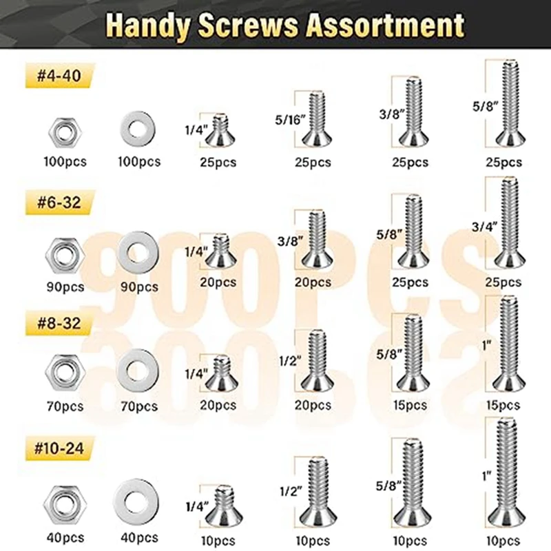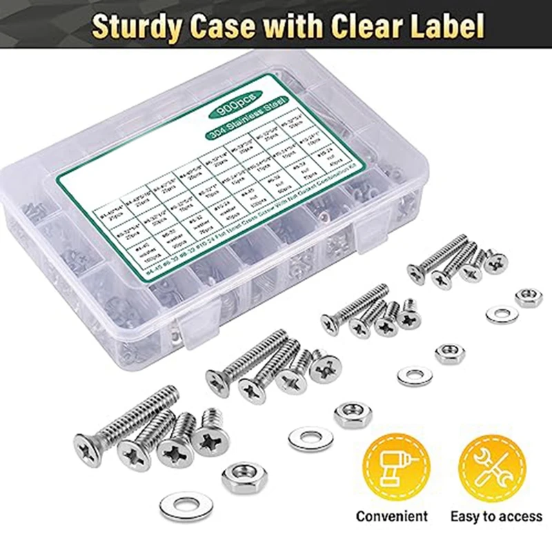 Набор гаек и болтов из 900 предметов для домашних проектов, набор винтов из нержавеющей стали в ассортименте