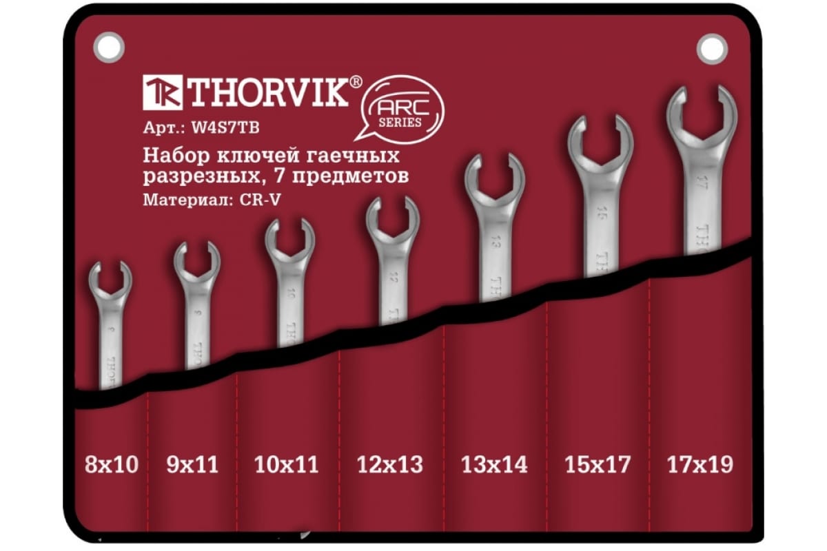 Набор гаечных разрезных ключей, предметов в наборе: 7шт., Cr-V, сумка, Thorvik ARC W4S7TB (52626), W4S7TB