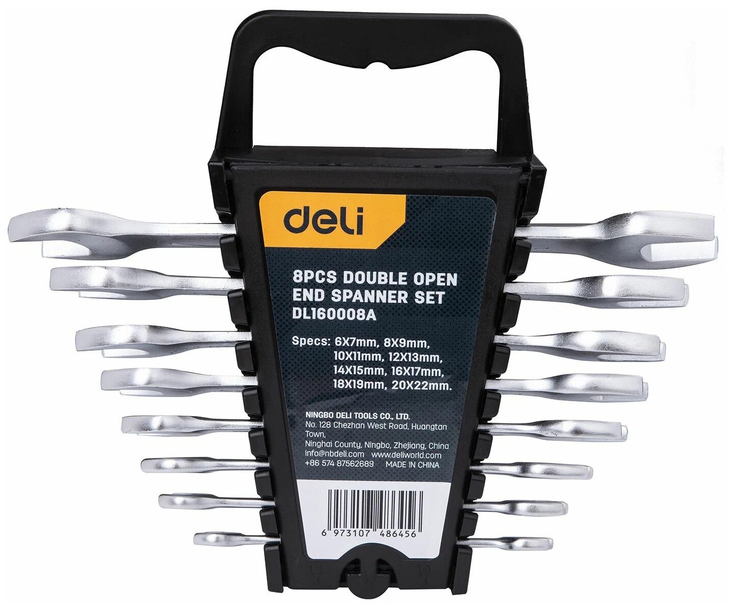 Набор гаечных рожковых ключей, предметов в наборе: 8шт., сталь, ключи: рожковые - 8шт., пластиковый кейс, Deli DL160008A (DL160008A), DL160008A