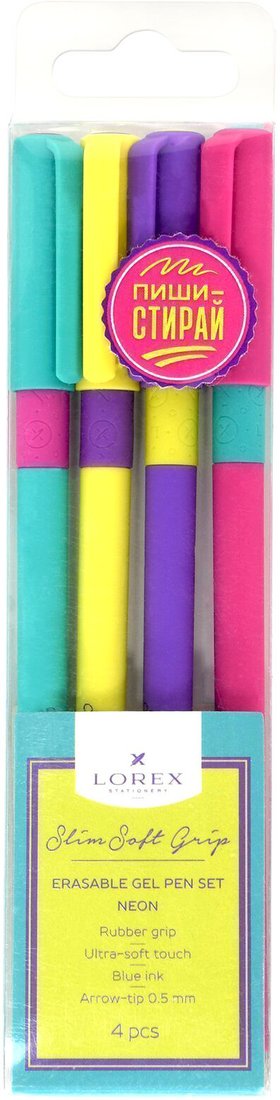 Набор гелевых ручек Lorex Neon Slim Soft Grip Пиши-стирай LXEPSSG-NN4-4p