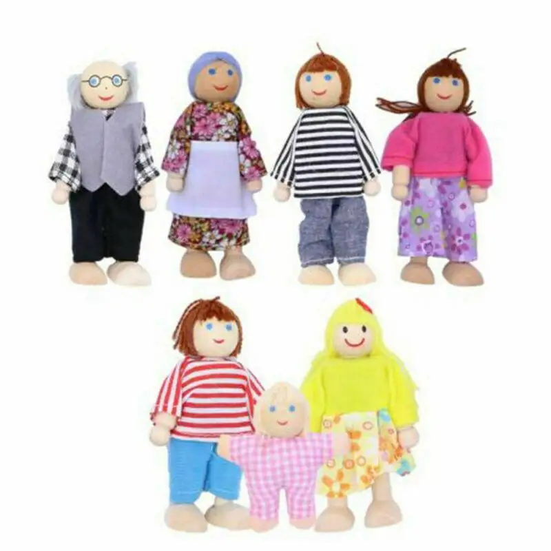 Набор деревянных игрушек для кукольного домика, семейные куклы, фигурки, наряженные персонажи, деревянный кукольный домик, семейный набор из 7 мини-людей