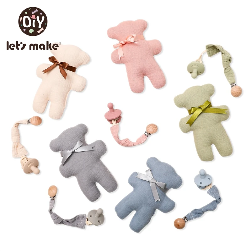 Набор детских погремушек Let's Make, милый медведь, хлопковые мягкие плюшевые игрушки, детская цепочка для соски, силиконовая соска, подарок на день рождения для младенца