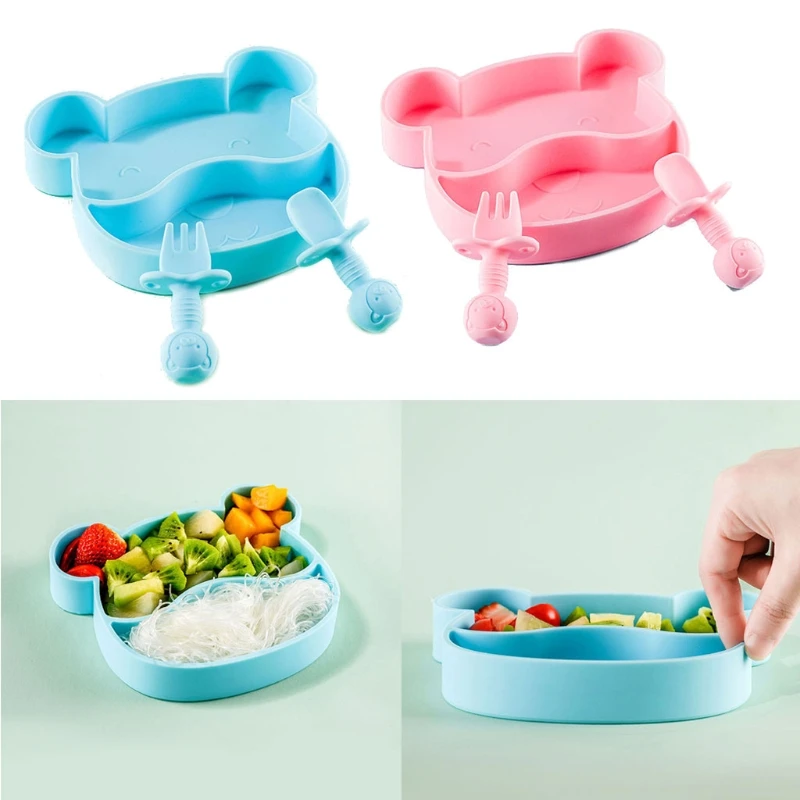 Набор детских силиконовых тарелок, детская посуда, посуда, портативная вилка, ложка, Набор детских тарелок для еды D0AF