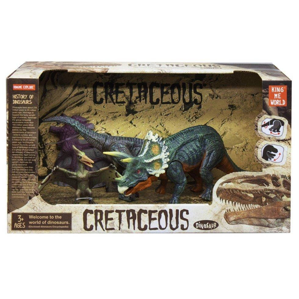 Игровой набор динозавров будет интересным подарком для ребенка. В комплекте есть 3 динозавра: трицератопс, тираннозавр, птеродактиль. У каждой игрушки подвижные конечности. Высота фигурок - от 5 до 13 см. Выполнены из качественных материалов. Для детей от 3-х лет.