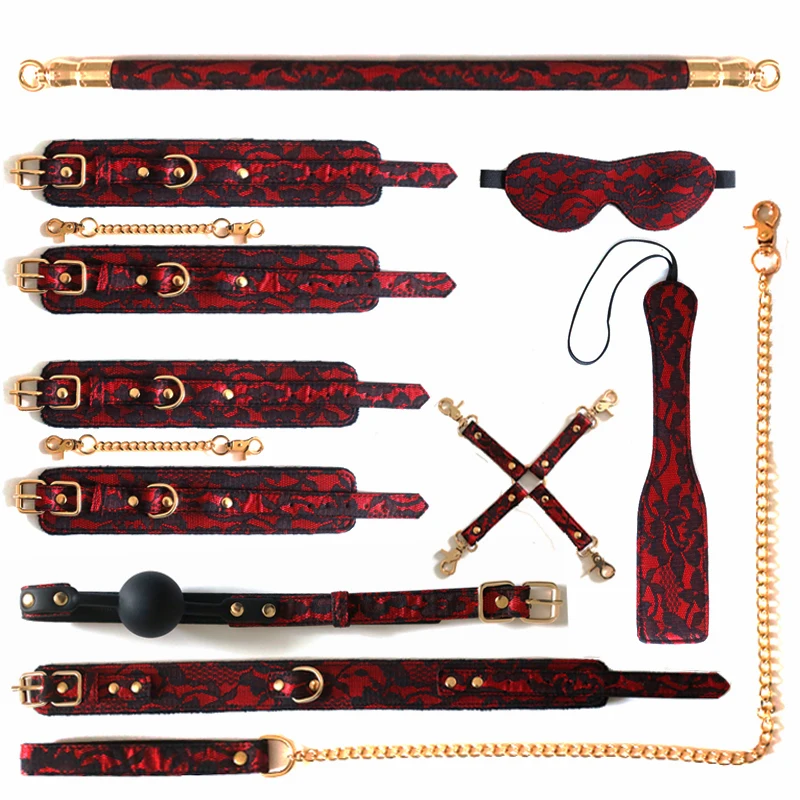 Набор для БДСМ бондажа кружевной кожаный удерживающий набор наручники манжеты на лодыжку воротник кляп плетка и маска для глаз взрослые фотопары