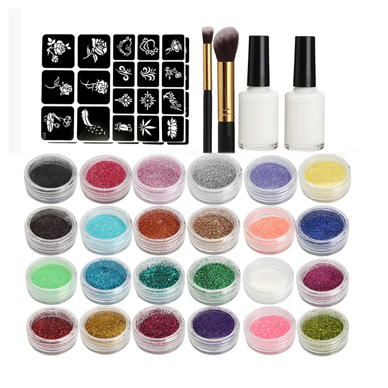 Набор для Временной Татуировки с алмазным блеском, 24 цвета, 2 клея, 2 бруска, для Временной Татуировки, боди-арт, высокое качество