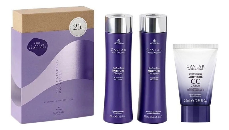 Набор для волос Исключительное увлажнение Caviar Anti-Aging Replenishing Moisture (шампунь 250мл + кондиционер 250мл + СС крем 25мл)